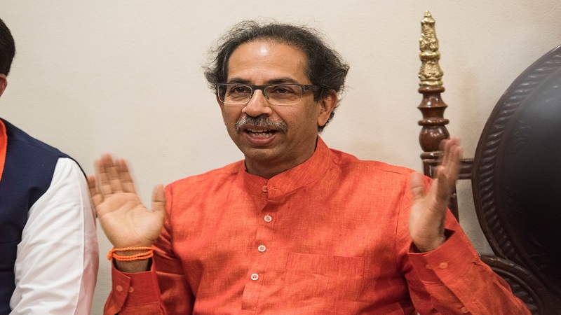 MUMBAI, INDIA - MAY 23: Shiv Sena chief Uddhav Thackeray at Matoshri during a press conference after the Lok Sabha results were announced, Kalanagar, Bandra East, on May 23, 2019 in Mumbai, India. Fadnavis along with ministers Girish Mahajan, and Vinod Tawde and MLA Ashish Shelar paid a visit to Thackeray at his residence at Bandra East after the trend confirmed their win in the state. Both Fadnavis and Thackeray also refuted rumours that Sena might take a hit during the assembly elections following the BJP's clean sweep in the Lok Sabha polls, possibly leading to the collapse of the alliance. (Photo by Aalok Soni/Hindustan Times via Getty Images)