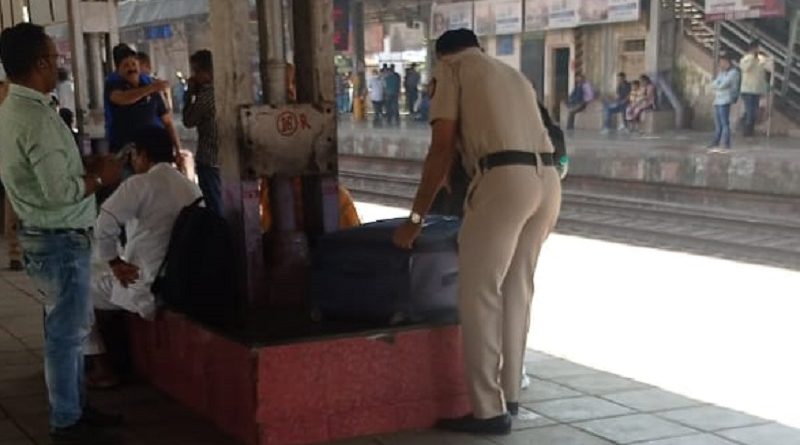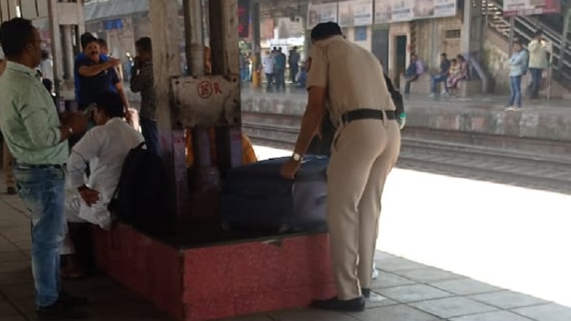 कल्याण स्टेशन पर पुलिस द्वारा अवैध रूप से बैगों की जाँच पड़ताल
