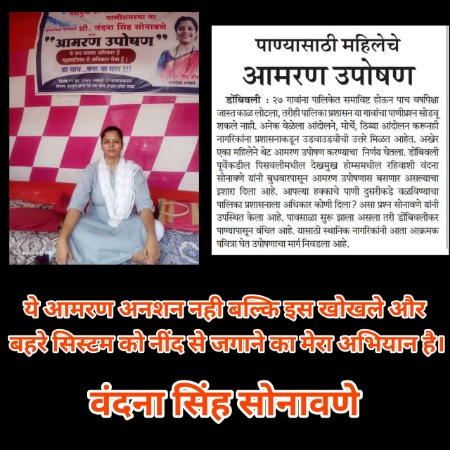 स्थानीय देशमुख होम्स निवासी और सक्रिय समाज सेविका वंदना सिंह सोनवने ने गत महीने इन्हीं पेयजल समस्या के समाधान के लिए आमरण अनशन किया था।